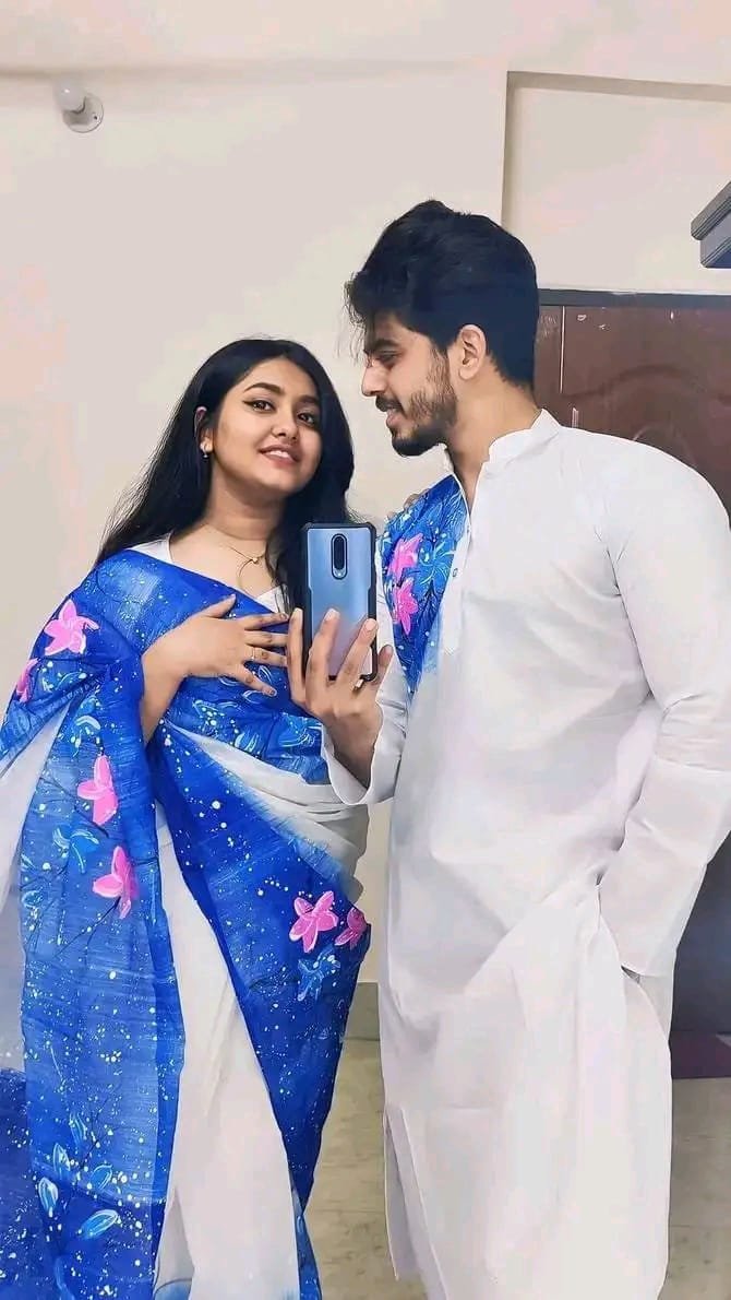 - হাফসিল্ক শাড়ি + ধুপিয়ান কটন পাঞ্জাবি