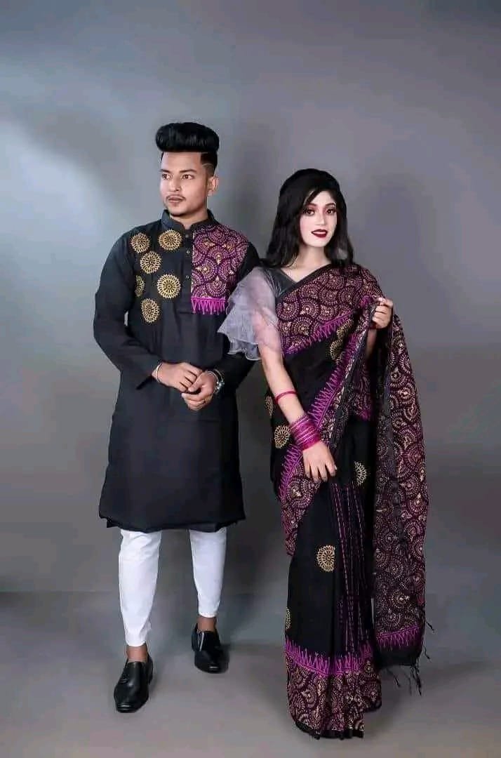- হাফসিল্ক শাড়ি + ধুপিয়ান কটন পাঞ্জাবি