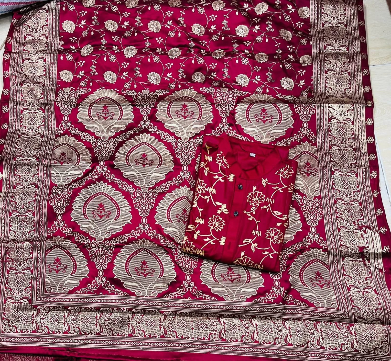 বেনারসি সিল্ক শাড়ি+ব্লাউজ+পাঞ্জাবি – S2 (লাল)